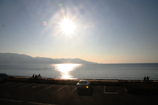 海面に太陽が写っているようなのだが、海面に写った太陽はまるで「道」のように水平線から足元まで続いている。よく考えてみると、これは少し不思議に思える。海面に反射した、つまり、海面という鏡に映った太陽の姿がなぜ「上下反転した太陽」でなく「輝く道」のように見えるのだろうか。
