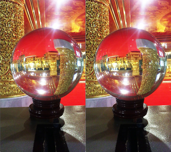 インスタ映えするということで(日本人観光客が多く訪れ・とても悪評を拡げているという)Wat Paknam Bhasicharoen(ワット・パクナム・パーシーチャルン)にも、早朝8時に行ってみました。日本人的にインスタ大人気の最上階も面白かったのですが、そこに辿り着くまでの途中階も、…ガラクタ市で「何かの古道具」探す一人として、とても楽しめました。どういうことかというと、さまざまな過去の歴史上で作られた技術展示や、(仏教系の新興宗教にまつわる)日本訪問の記録や、そして「(ガラスや宝石を使った)透明球体」展示がされていたからです。